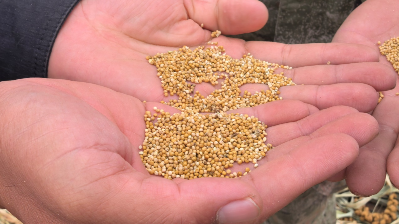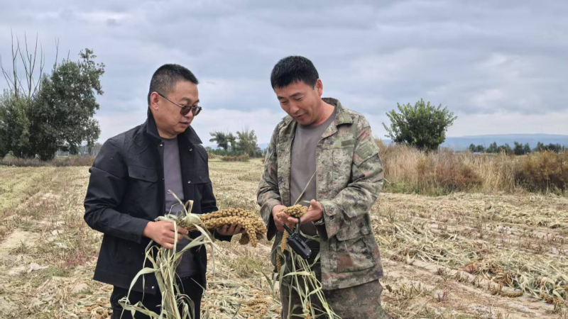 云景农业科技有限公司负责人岳新刚与种植户们站在地头,望着这丰收的景象,脸上洋溢着掩饰不住的喜悦,开心地谈论着今年的好收成。“我们公司今年种植高粱和谷子,谷子8000多亩,高粱7000多亩,由于雨水好今年的长势不错,预计今年的产量高粱亩产量能达到1000多斤,谷子平均亩产量可以上到800多斤。”云景农业科技有限公司负责人岳新刚说。