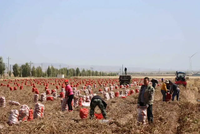 金秋九月,察右后旗马铃薯迎来丰收季。9月30日,在当郎忽洞苏木的马铃薯种植带,大型收获机正穿梭作业,工人们忙碌不停,饱满匀称、色泽鲜亮的马铃薯被陆续采收,分拣、装袋、搬运等环节有序推进。