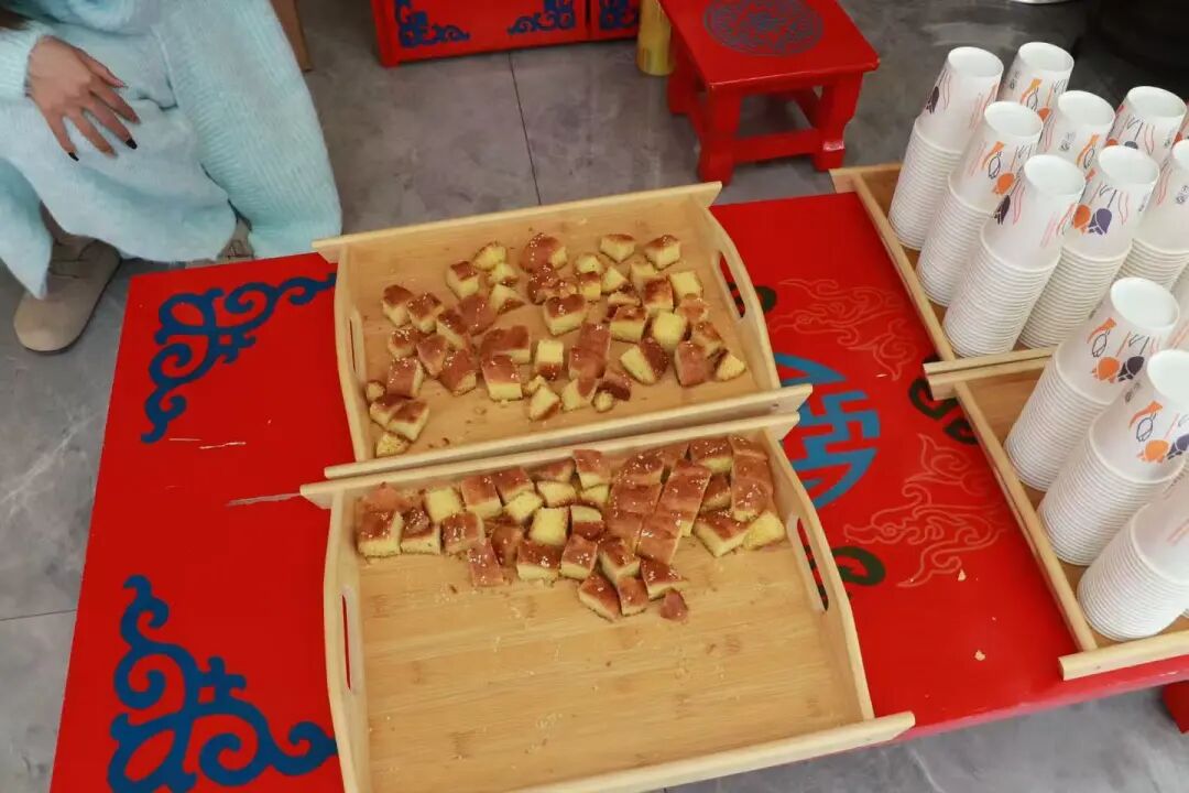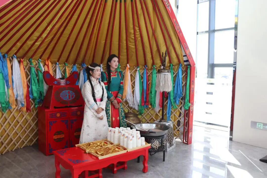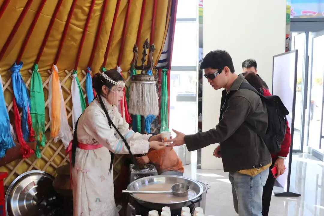 活动现场,身着绚丽蒙古袍的礼仪员宛如草原上的精灵,亲切地问候每一位过往游客,递上热气腾腾的奶茶和月饼。暖茶香气诱人,似冬日暖阳温暖游客心田;月饼承载着蒙古族人民的诚挚祝福,让节日氛围愈发浓厚。