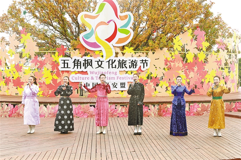 在五角枫文化旅游季文艺舞台专场,科右中旗乌兰牧骑带来的精彩节目轮番上演,引来阵阵掌声。“我们从吉林白城而来,既赏了枫,又感受到浓厚的文化,不虚此行!”游客王丽娟赞叹道。