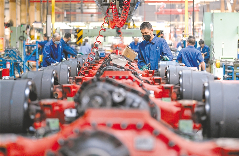 近日,在包头北奔重汽桥箱有限公司生产车间内,工人正在生产线上忙碌。近年来,该公司整合军品技术优势与民品市场资源,通过科技创新,突破高承载轻量化、智能传操等技术瓶颈,打造适配多元场景的可靠性产品。目前,该公司车桥产品包含卡车、客车、特种车三大系列70多个品种,年产约18万根车桥总成。本报记者 孟和朝鲁 摄