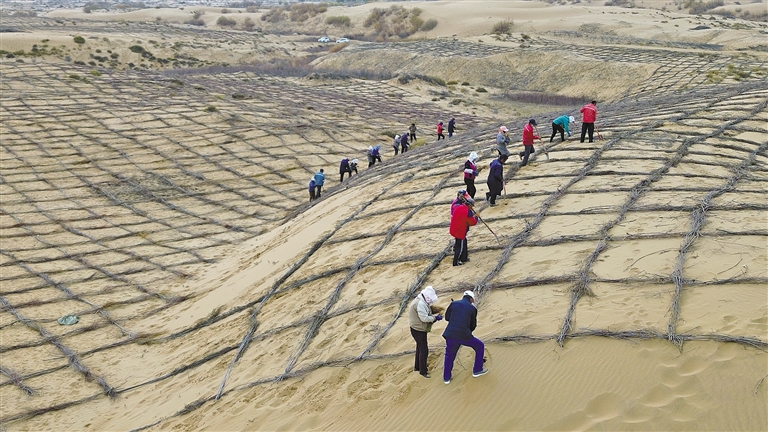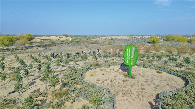近年来,乌审旗创新治沙模式,推行“三元套嵌”精准治理体系,实现沙化土地分类施策、科学治理。同时,通过“以工代赈”机制广泛吸纳近万名农牧民参与生态建设,实现生态保护与民生改善双向赋能。