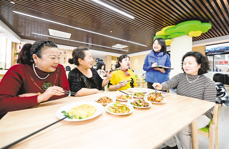 11月27日,老年人在为老餐厅品鉴菜品时,向负责人提出建议。当日,呼和浩特市新城区西落凤街社区、艺术厅南街社区联合举办“食惠夕阳红 艺聚邻里情 共享幸福食光”主题活动,邀请辖区老年人走进为老餐厅,品鉴特色菜品、参与文艺娱乐活动,在暖胃又暖心的氛围中感受社区关怀。截至目前,新城区已建成64个助餐点和为老餐厅,切实让老年人在家门口吃上“放心餐”。本报记者 孟和朝鲁 摄