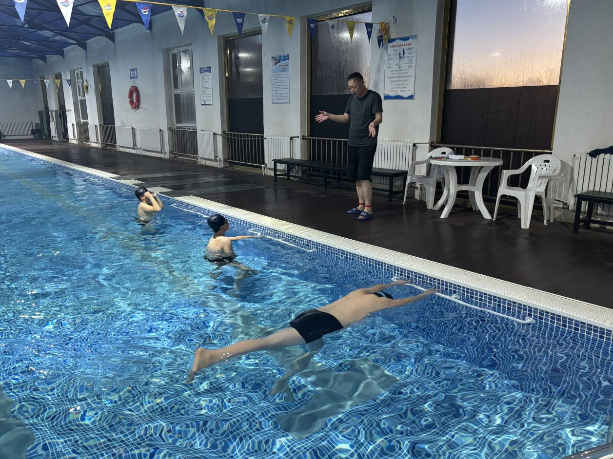 走进凉城县第三中学游泳馆,泳池内水花翻滚,一派热闹。队员们在教练的指导下,甩臂、蹬腿、划水、转身,一系列动作行云流水。凉城三中游泳队队员修晟钰说:“我来自呼和浩特市,目前专门来到凉城三中进行游泳训练,主攻自由泳项目。我从10岁开始学习游泳,起初只是为了锻炼身体和掌握一项生存技能,后来在教练的指导下,我逐渐发现自己在水中的节奏感和爆发力都不错,对游泳的热爱也越来越深。慢慢地,游泳从单纯的爱好变成了我每天必须坚持的事情,于是我选择走上专业训练的道路。我会继续努力,争取早日成为一名一级运动员。”