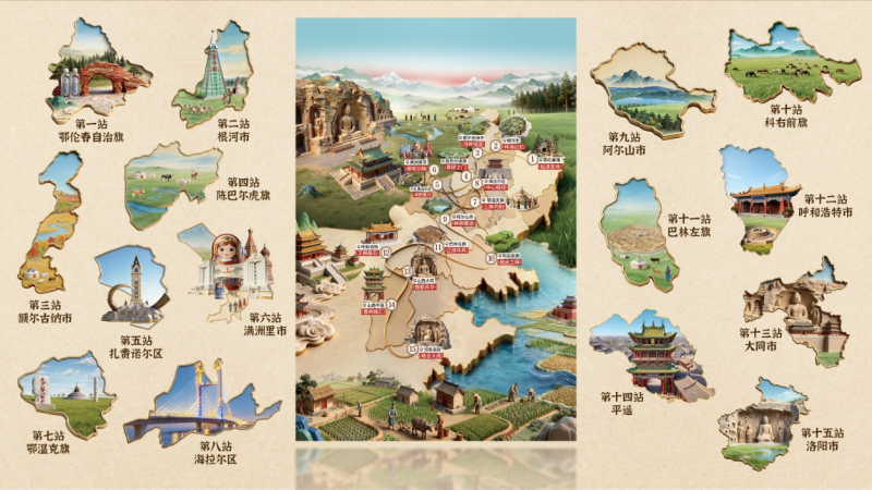 这份地图的诞生,源于一段厚重的历史脉络与一次成功的当代实践。公元1世纪,拓跋鲜卑自内蒙古大兴安岭嘎仙洞启程,逐水草而居吸纳游牧文明,经大同扎根、向洛阳迁徙,最终推动游牧与农耕文明深度交融,沉淀下三省区共有的历史遗产与味觉记忆。2025年,呼伦贝尔农垦集团以拓跋鲜卑迁徙史诗为精神内核,牵头开展10场“呼伦贝尔大草原品牌神州行”活动,联动内蒙古、河南、山西三省区十五城文旅骨干企业及行业协会,深度绑定三地农文旅资源,携200余款绿色有机农畜产品巡展,实现销售额近千万元、全网曝光近4795万次的亮眼成绩,更以“品牌推广赋能民族团结”的创新路径,为地图的诞生奠定坚实基础。