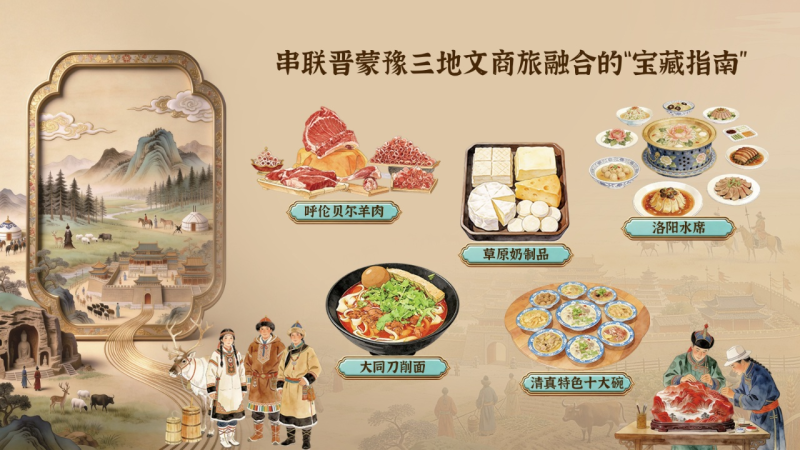 从嘎仙洞的猎火到洛阳城的炊烟,从草原奶茶到中原汤羹,这张地图不仅是美食文旅指南,更是各民族像石榴籽一样紧紧相拥的生动见证。未来,它将持续深化三省区农文旅深度融合,让历史文脉成为引流“金名片”,让特色农产成为富民“金钥匙”,让民族团结之花在协作共赢的沃土上愈发绚烂。