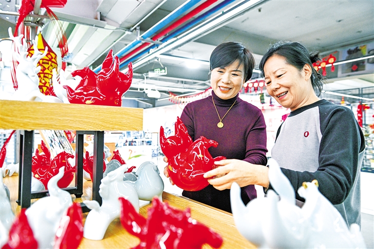 1月26日,市民在欣赏马文创产品。当日,“腊八融民艺·非遗润年俗”民间文艺非遗年货迎新春展示活动在呼和浩特市文联民族艺术空间举行,活动以“文商融合”为纽带,以民间剪纸、版画、布贴画等多项非遗技艺为主题,让群众感受传统民间手工艺的魅力。 本报记者 王磊 摄