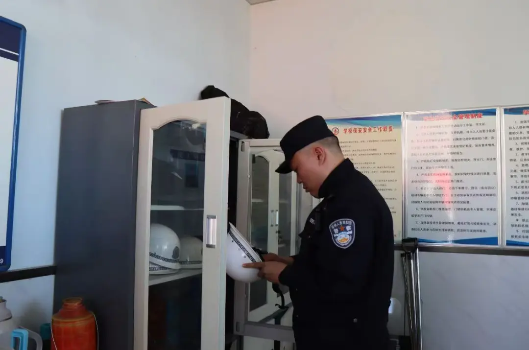 治安警察们则深入校园内部,开展全面细致的安全排查工作。仔细检查校园警务应急装备是否完好有效,监控是存在盲区,对排查出的安全隐患,第一时间记录并督促相关人员整改,及时消除潜在安全风险。同时,治安警察积极与学校安保人员沟通协作,强化校园出入口管理,严格落实外来人员登记制度,严防不法分子混入校园,为学生筑起一道坚不可摧的安全防线。隐患排查结束后,治安警察还深入各个班级,开展无死角安全检查,从教室门窗、桌椅摆放,到消防设施、电器设备,每一处细节都逐一检查,全方位保障学生校园内外安全。