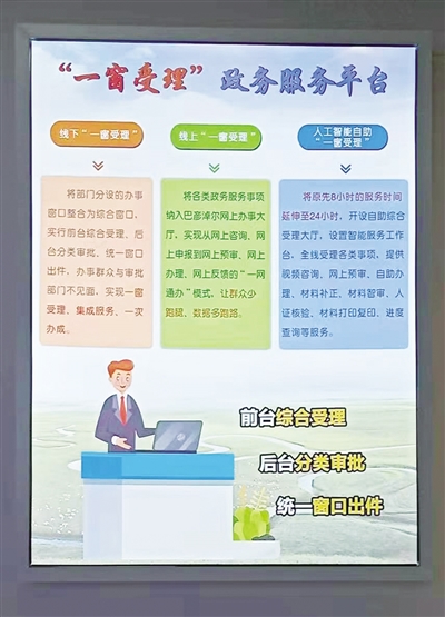 针对个体户开店需要群众分散跑办,审批流程长、环节多、效率低、群众怨气大的实际,市政务服务局将个体户开店涉及的所有部门全部集中到政务大厅,原来需要几十天办成的事,现在全部压缩到5个工作日内办结。据市政务服务局局长段建强介绍,目前全市四级政务服务场所建成率达100%。按照行政许可必进、联办事项必进、高频便民服务事项必进原则,70%以上政务服务事项进驻实体政务平台办理,真正让群众推开一扇门,能办更多事。