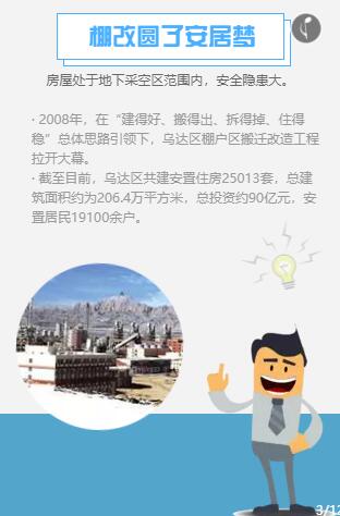 截至目前,乌达区共建设各类棚改安置住房25013套,总建筑面积约为206.4万平方米,总投资约90亿元,以多种形式搬迁安置煤矿棚户区居民19100余户,让有意愿搬迁的居民全部搬迁。