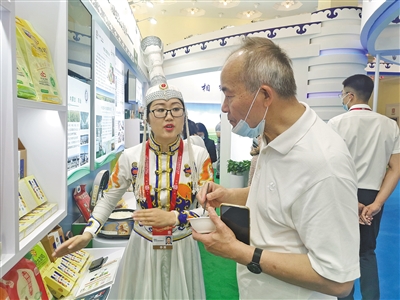2021年中国品牌日活动5月10日到12日在上海举行,我区21家企业盛装亮相。3天活动中,快乐小羊、兴安盟龙鼎等内蒙古自主品牌倍受消费者青睐,内蒙古展区人气爆棚,内蒙古品牌流芳溢彩。近年来,我区孕育了11个农牧产业集群、16个优势特色农畜产品产业带、9个中国特色农产品优势区,培育了36个有较高知名度的区域公用品牌。此外,还通过开展“内蒙古味道”系列活动,推动“蒙字号”“老字号”等品牌消费。(本报记者 李永桃 摄影报道)