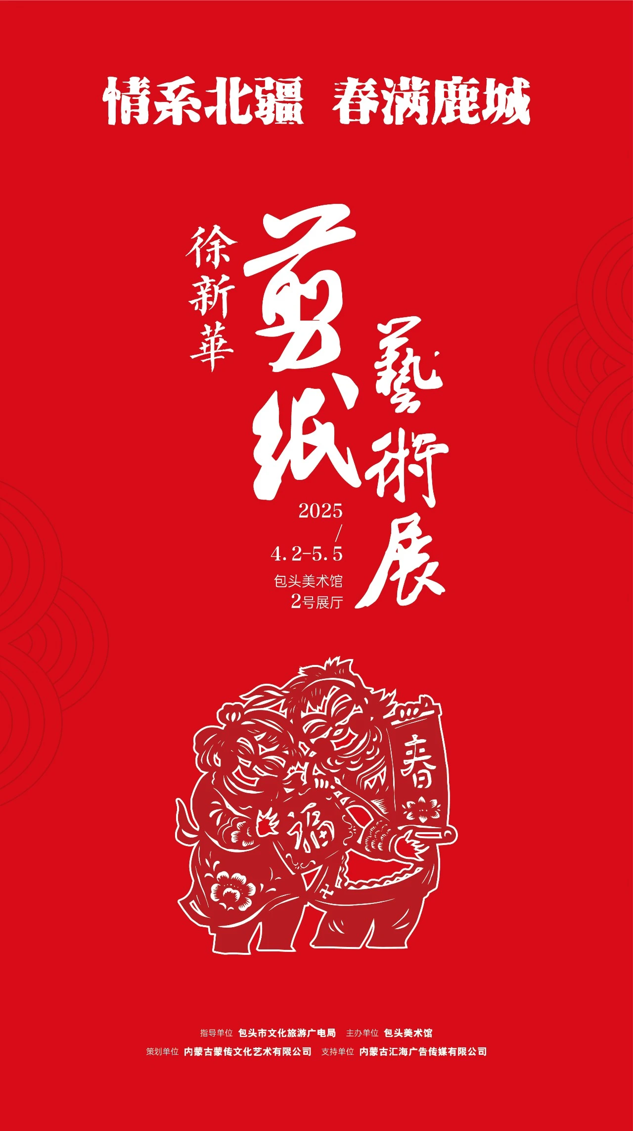 4月2日上午,由包头市文化旅游广电局指导,包头美术馆主办,内蒙古蒙传文化艺术有限公司策划,内蒙古汇海广告传媒有限公司支持的“情系北疆 春满鹿城”——徐新华剪纸艺术展,在包头美术馆开幕。