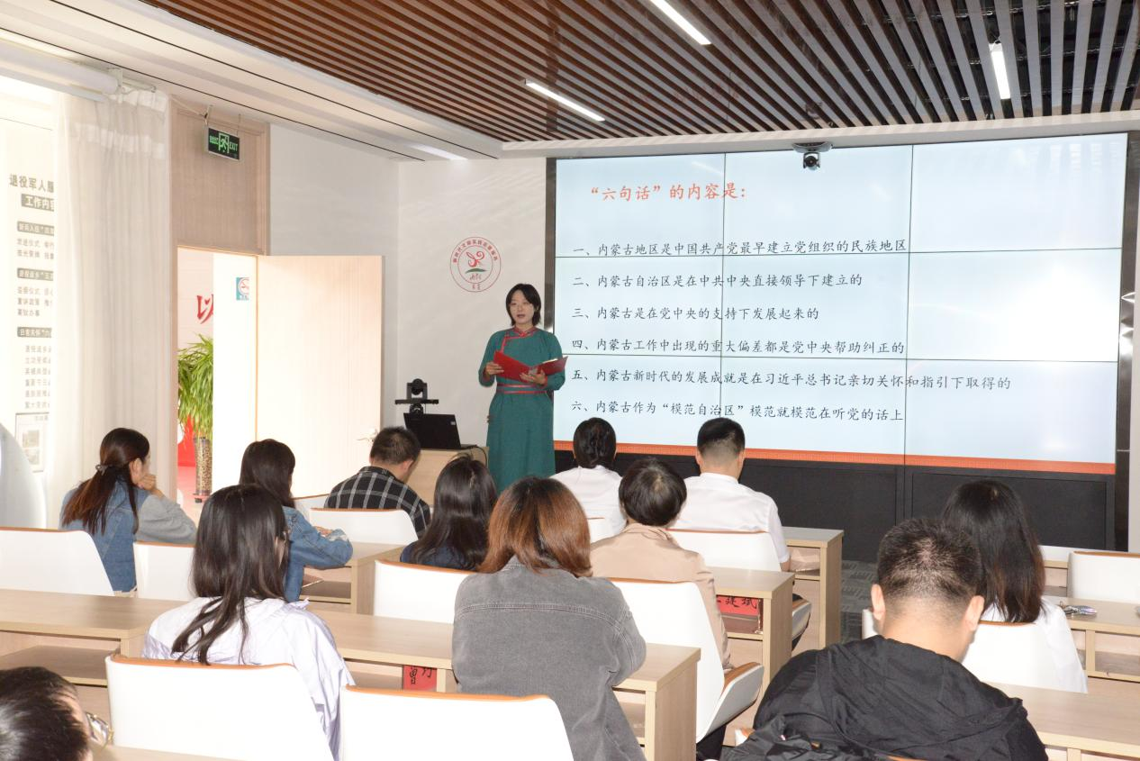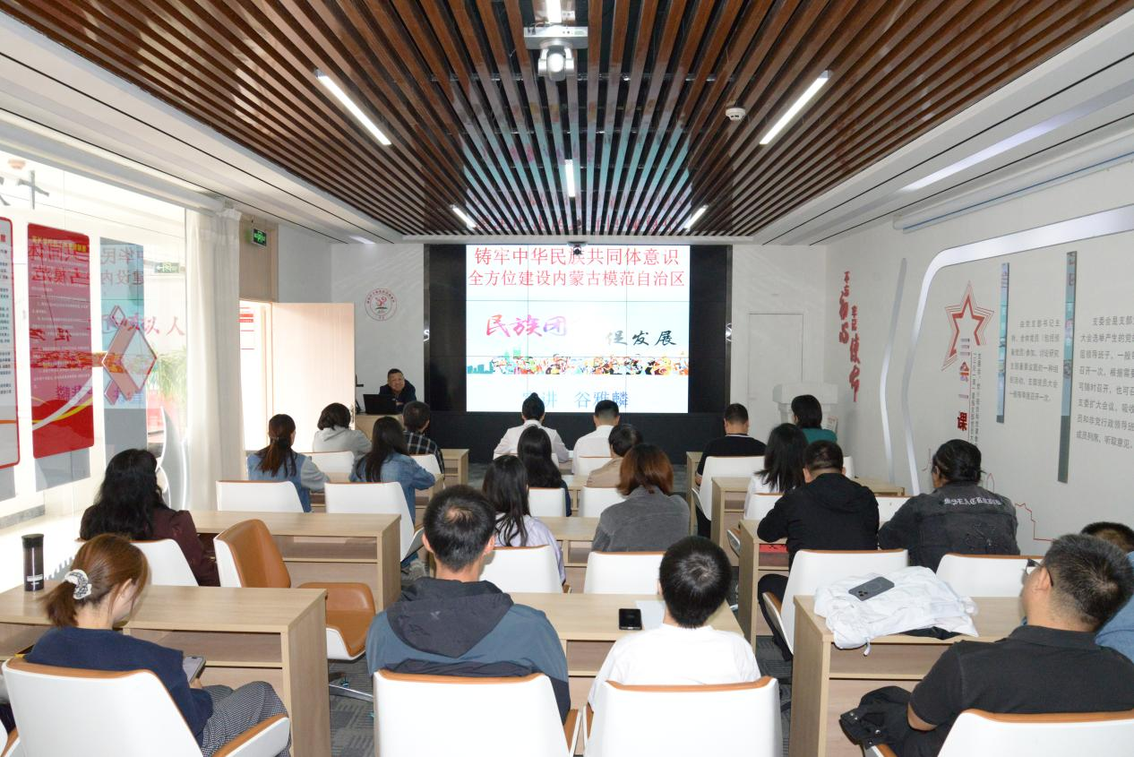活动在庄严氛围中启幕。玉泉区委讲师团讲师围绕“铸牢中华民族共同体意识”作专题宣讲,系统阐释其深刻内涵与时代价值,引导与会党员、积极分子和青年代表深化民族团结的思想自觉与行动自觉。通信公司宣讲员以《从星火到燎原:内蒙古自治区的诞生》为题,回溯党的领导下内蒙古自治区的发展历程,展现草原儿女团结奋斗的壮阔图景,激发全员历史使命感。