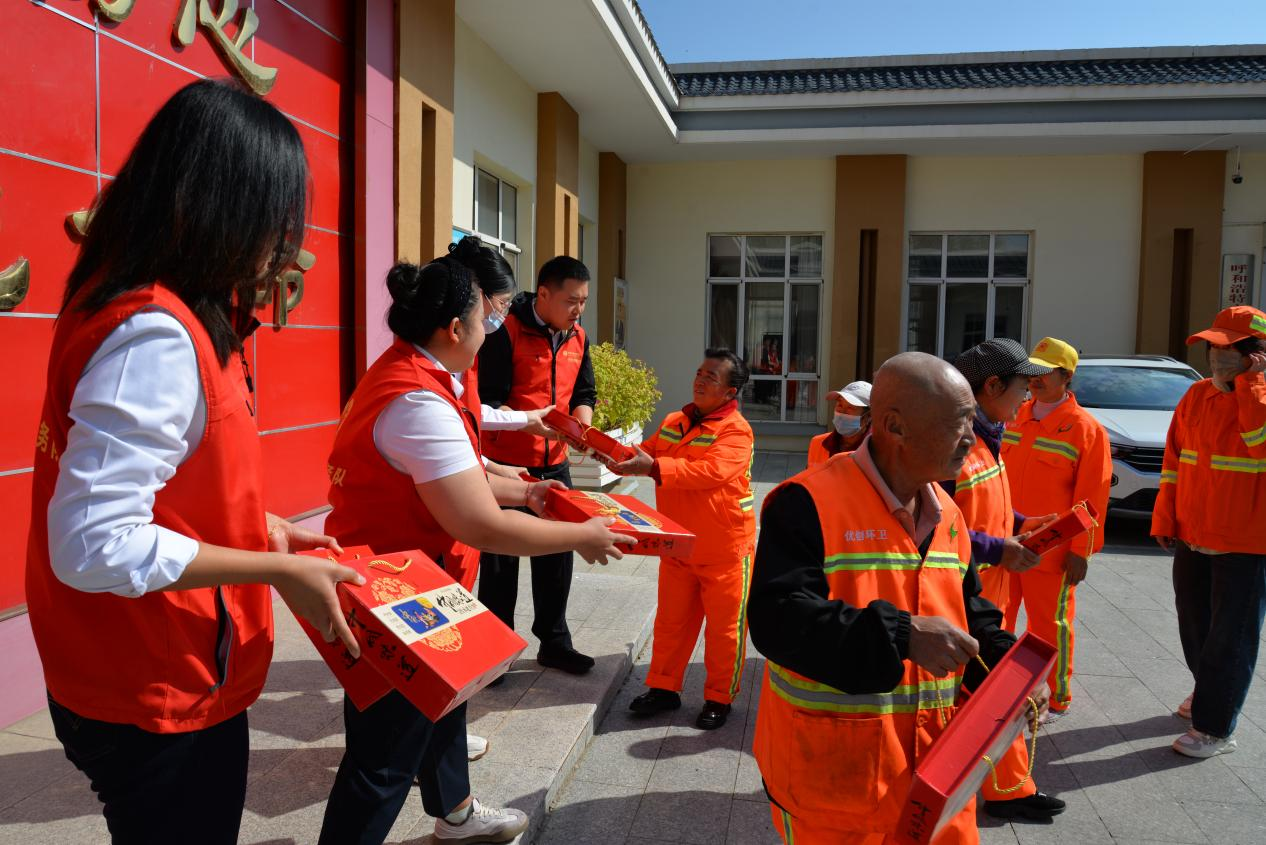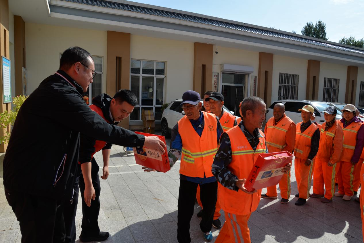 理论宣讲后,“铭记党恩・情暖中秋”志愿服务环节展开。志愿者向石东路街道环卫工人献上节日慰问与祝福,致谢“城市美容师”长期以来的辛勤付出。这一举措既彰显了参与党支部对一线劳动者的关怀,也以实际行动传递了“奉献、友爱、互助、进步”的志愿精神。