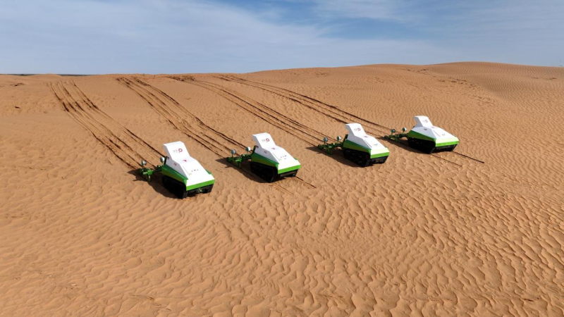 种子绳播种机器人能减少播量,提高治沙效率,在各个沙地应用成效良好。