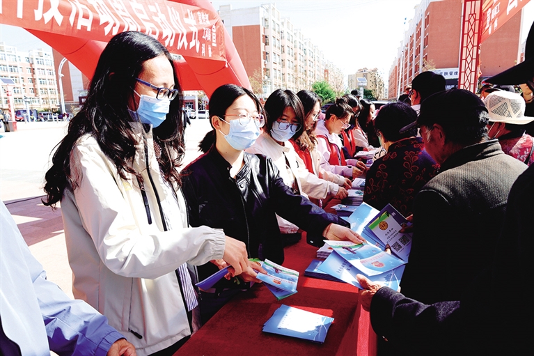 林西县代办点工作人员走进社区宣传。
