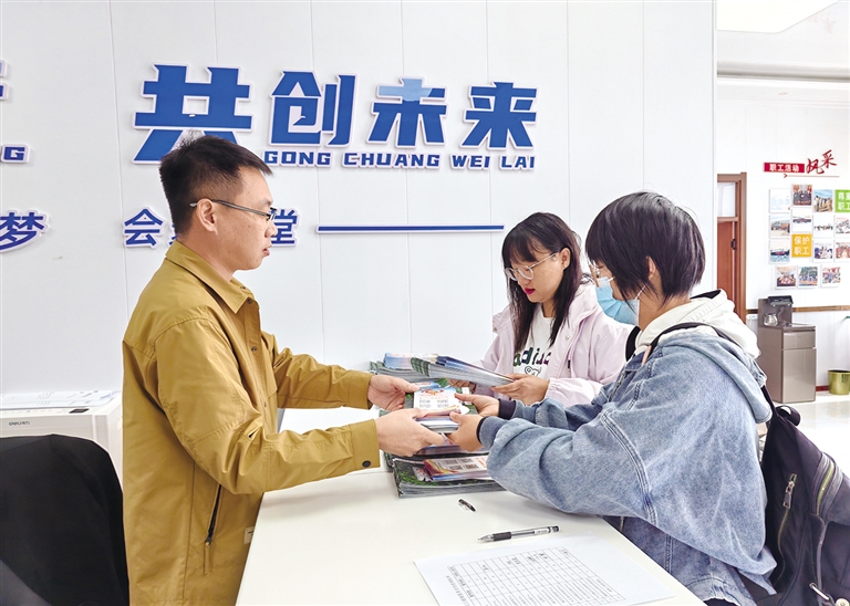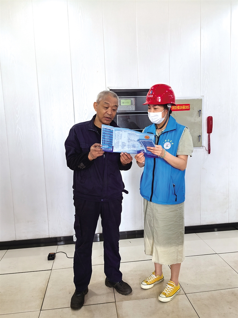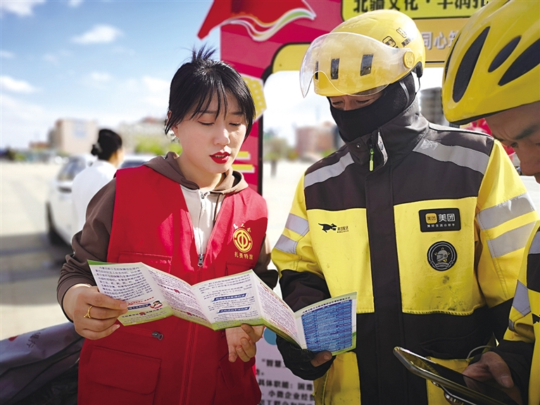 互助保障工作人员向新就业形态劳动者讲解政策。