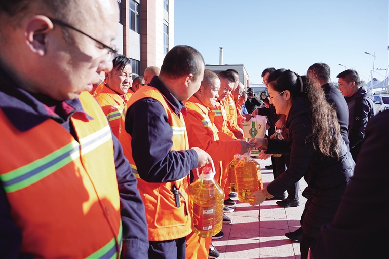 呼和浩特市玉泉区总工会慰问环卫工人。