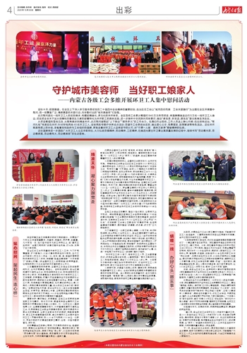 内蒙古各盟市工会紧扣“感党恩、听党话、跟党走”群众教育实践要求,以物资慰问、特色服务、精神激励等多元举措,为一线环卫工人送上“娘家人”的温暖,在全区营造关爱尊重环卫工人的浓厚氛围。
