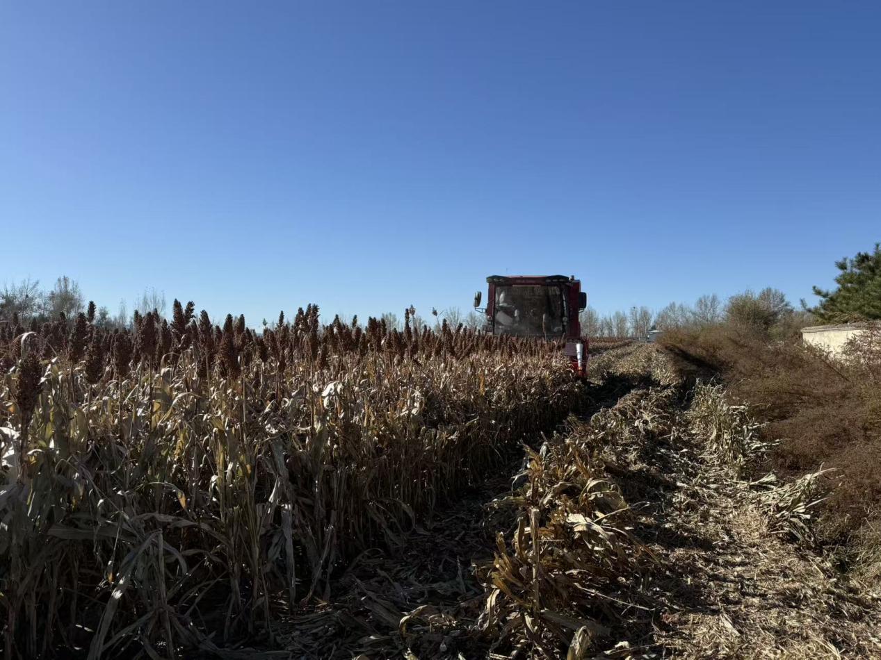 这几天,岱海镇苏义村的高粱种植基地,成片的高粱随风摇曳,泛起层层穗浪。火红的高粱与湛蓝的天空交相辉映,构成了一幅独具特色的塞外丰收画卷。田间地头,大型收割机正开足马力,来回穿梭。机械过处,一株株高粱被连秆带穗卷入,收割、摘穗、脱粒、秸秆粉碎等工序一气呵成。满载而归的收割机将颗颗饱满的高粱倒入运粮车中,高效的机械化作业确保了秋粮“应收尽收、颗粒归仓”。
