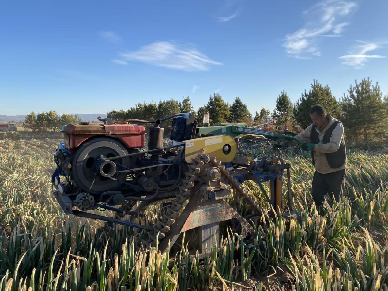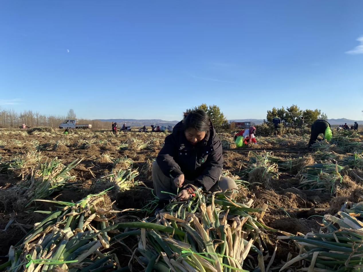 在井沟村的大葱种植基地,大葱收获机来回穿梭,工人们正麻利地捆绑大葱,葱白粗壮饱满,叶子挺拔舒展,空气中都弥漫着浓郁的葱香。种植户郭粉兰今年与人合伙种植了110亩大葱,眼下正值本地大葱集中上市期,受多重因素影响,大葱遭遇销售困境,农户们面临“丰收不增收”的难题。