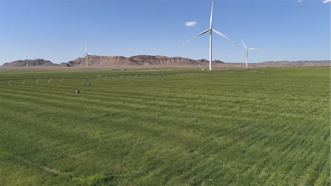 蒙草生态联合华能、中环等新能源企业组建生态治理联合体,立足巴彦淖尔风光资源和“沙戈荒”资源优势,开展光伏下沙化土地生态治理与高效利用、荒漠光伏下种草技术模式集成与示范等研究应用,创新实践“板上发电、板下修复、板间种植”的立体生态光伏治沙模式,光伏板下种植的梭梭、四翅滨藜等嫁接肉苁蓉后,亩均效益超过1200元,有效带动了沙漠经济发展。