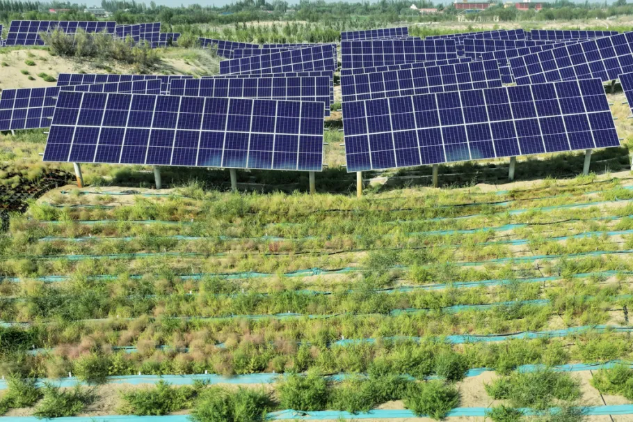 联合华能等新能源企业创新实践立体生态光伏治沙模式