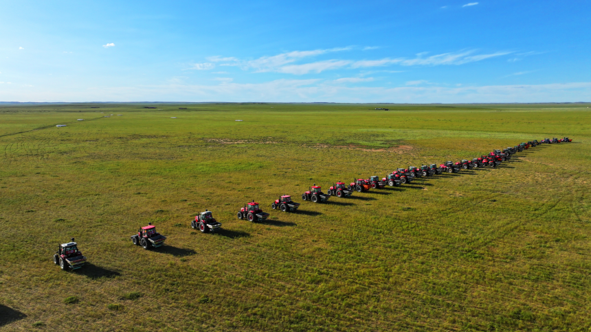 蒙草生态创新1300余台机械设备,组建免耕补播机械队、飞播机械队、抛肥机械队等专业机械作业队,开展系统化、机械化、智能化集群作业效率较传统人工提升了20至30倍。