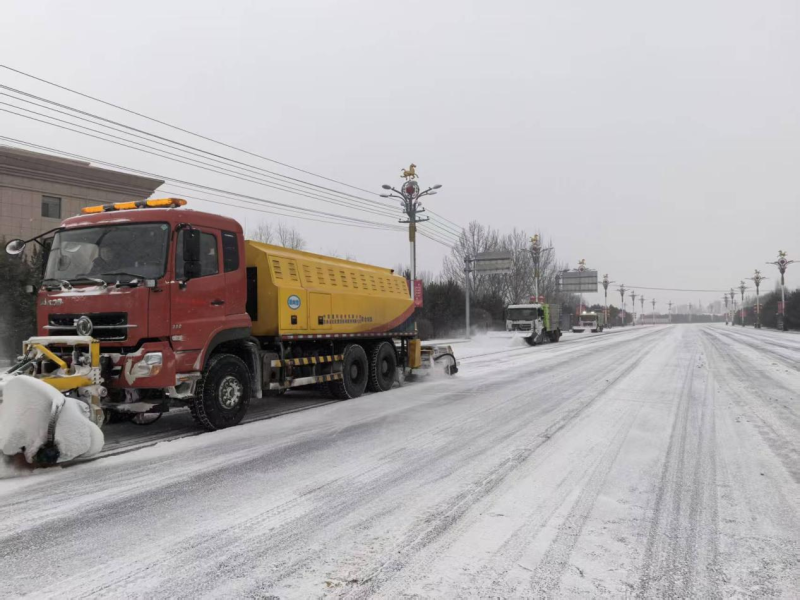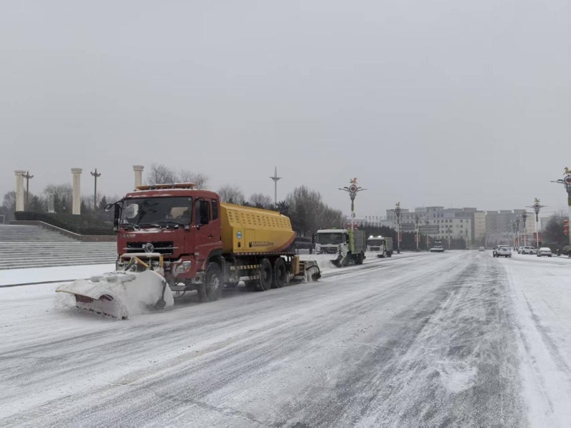 凉城县城市公共服务中心环境卫生管护站站长说周春华:“今天6点开始,我们城市公共服务中心,出动6台大型除雪车,对城区主干道进行除雪,同时环卫工人全部出动对人行道及十字路口进行清扫,全力保障群众出行安全。”