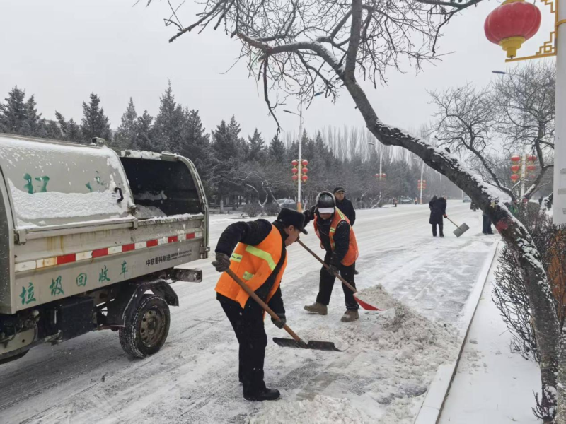 一大早,凉城县城市公共服务中心就组织清雪车、滚雪机等专业设备对城区主干道、十字路口、交通枢纽等关键点开展巡回清雪作业。机械轰鸣中,路面积雪被快速推运、清扫。针对机械作业无法覆盖的人行道、背街小巷等,环卫工人全员上岗,清理道路积雪。
