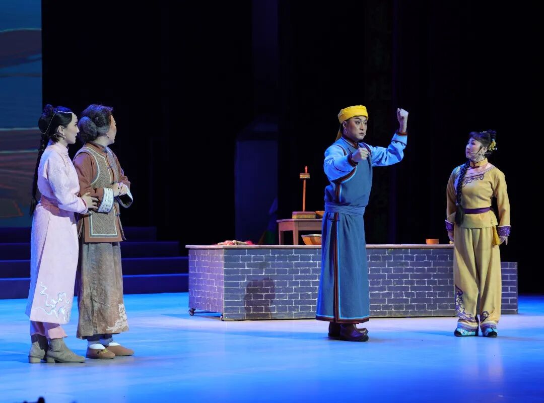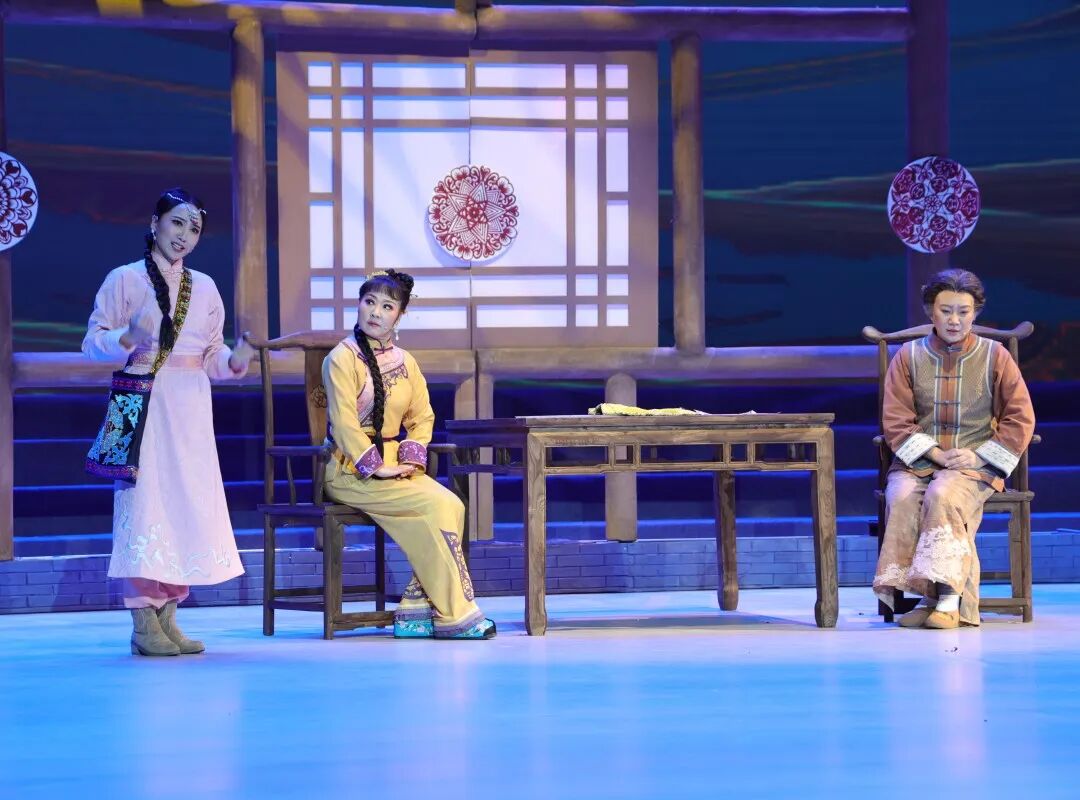 在唱方面,该剧中核心唱段严格坚守传统板腔唱腔的骨架与韵味,由学校青年教师与学生主演,让慢板、流水、二流水、亮调、捏子板等核心板类的传统声腔技艺通过舞台演绎得以活态呈现;在念方面,剧中念白保留传统方言的核心韵味与文化符号,同时优化过于晦涩的表达,简化复杂句式,让青年观众能轻松理解,降低认知门槛;在做方面,剧中舞蹈动作严格遵循传统身段的核心美学,让经典技法在舞台上完整呈现,学校同步将其转化为身段教学经典范本;在表方面,剧中角色表演延续东路二人台的传统表演韵味,通过剧情推进让传统表演技艺得以活态传递,学校将其打造为表演教学经典范本。