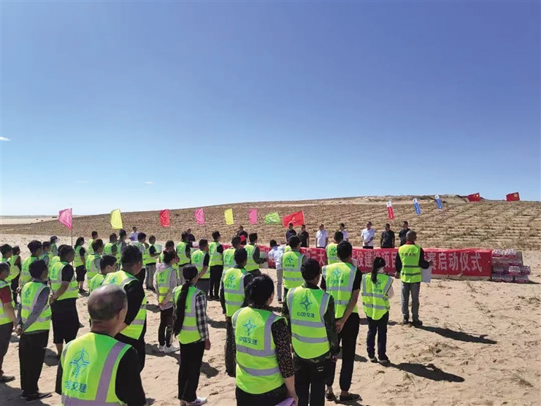 二连浩特市浑善达克沙地综合治理项目劳动竞赛现场。
