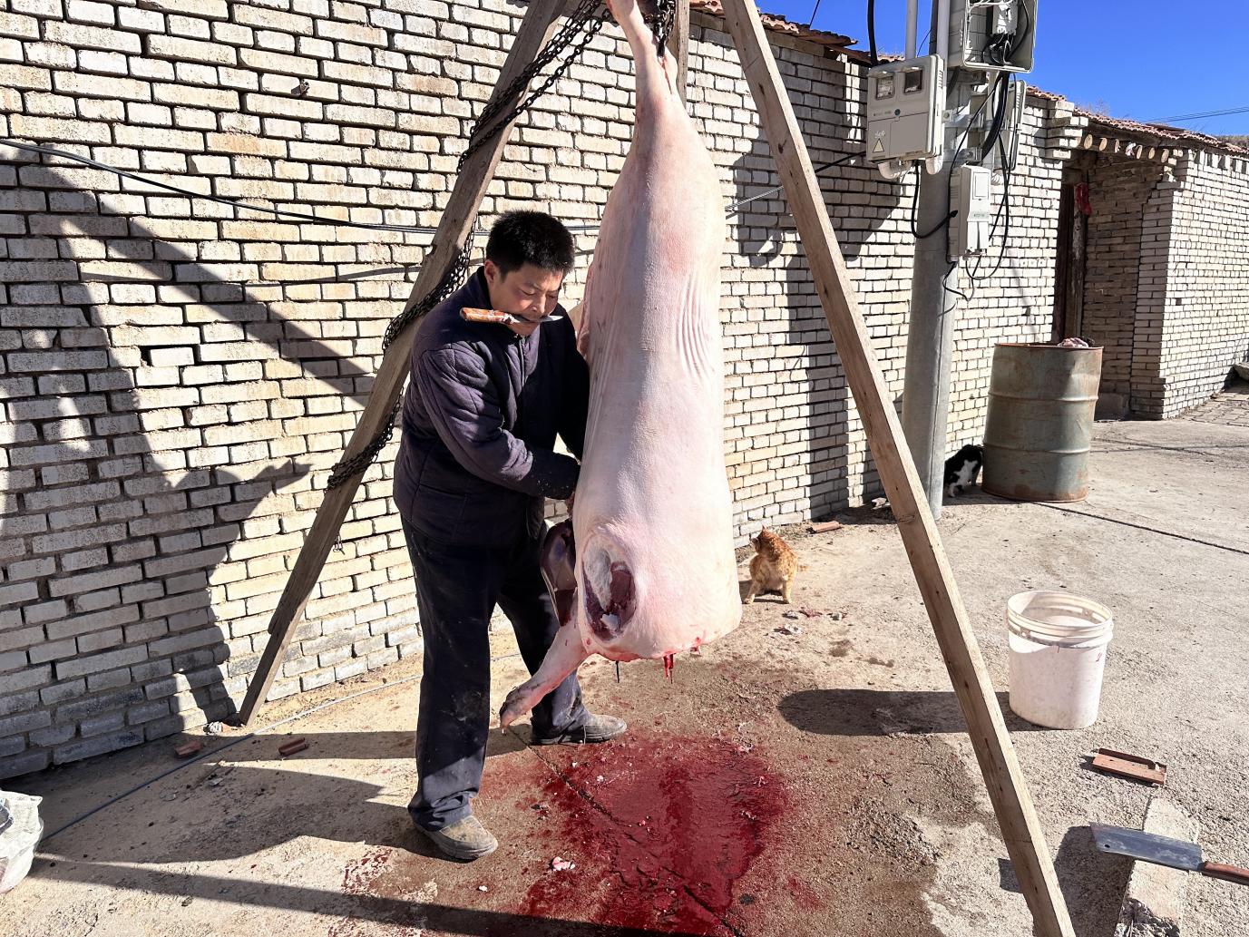 冬至脚步渐近,内蒙古乌兰察布市凉城县的乡村里,烟火气日渐升腾。在曹碾满族乡的一处农家院里,一年一度的“杀年猪”活动热热闹闹开场,这道扎根农耕文明的冬日盛宴,既犒赏着一年的辛勤劳作,更把邻里温情熬成了代代相传的文化印记。