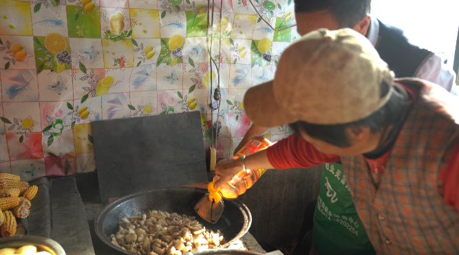 “大雪宰猪”是凉城人刻在骨子里的老规矩。这不,农家院里一吆喝,村民们立马分工协作:逮猪、宰杀、褪毛、分割,个个手脚麻利得很。院子中央的柴火灶燃起熊熊火焰,大铁锅咕嘟咕嘟冒着热气,氤氲的白雾模糊了眉眼,却挡不住大伙儿脸上藏不住的笑意。此时的本地年猪,经一年粮食喂养,膘肥体壮、肉质紧实鲜香,正是做杀猪菜的好食材。