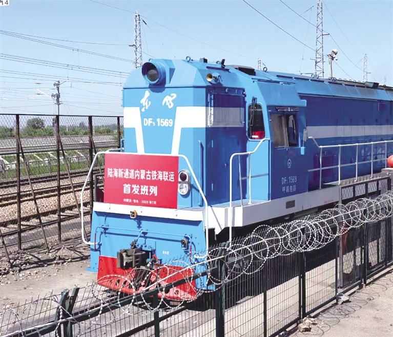 陆海新通道内蒙古铁海联运首发班列。
