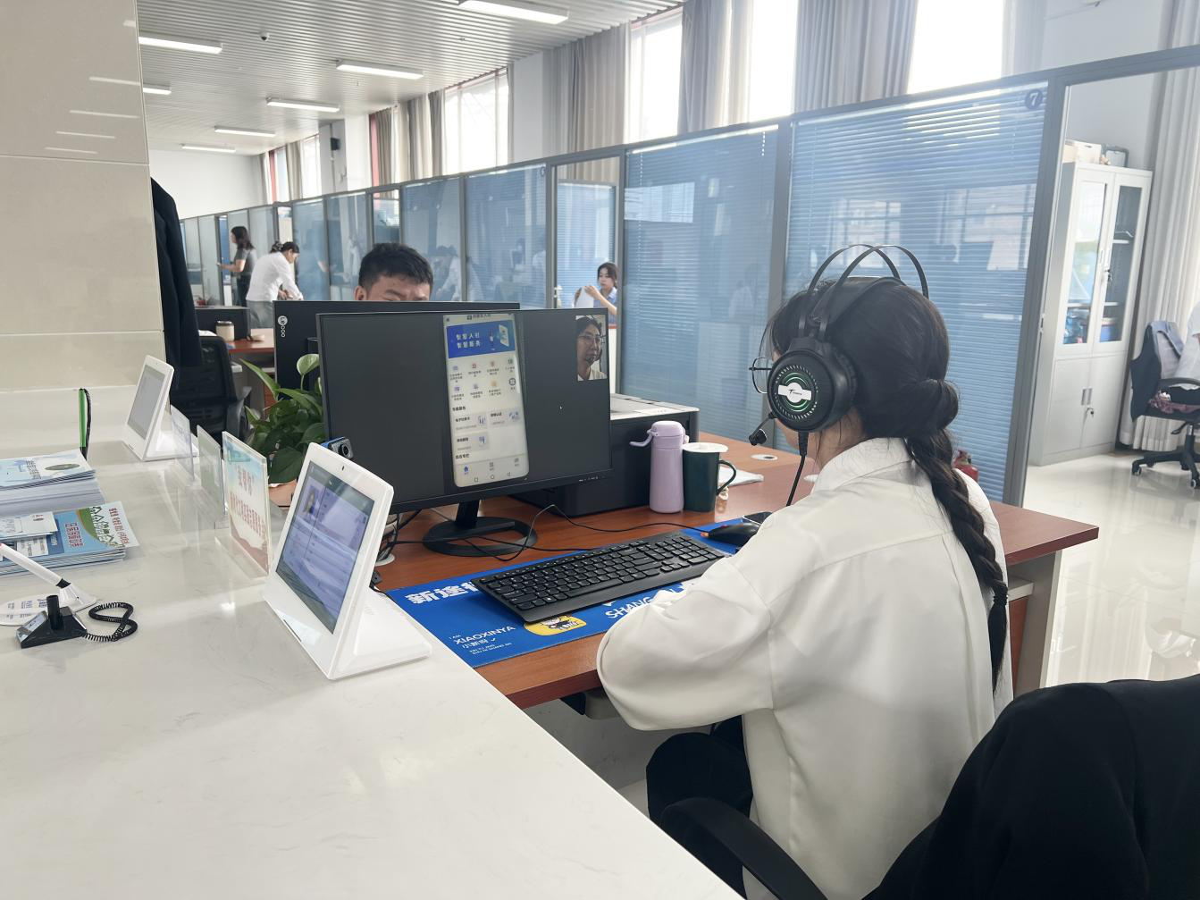 政务服务大厅工作人员通过视频远程指导群众办理业务。