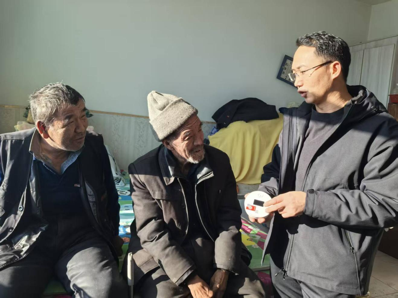 在鸿茅镇互助养老中心幸福院和岱海镇苏义互助幸福院,记者看到,工作人员为老人们选择最佳位置安装一氧化碳报警器,并对设备性能进行测试,同时耐心细致地为老人们讲解报警器的使用注意事项和预防一氧化碳中毒相关知识,确保老年人听得懂、能理解、会操作。有效提高群众安全防范意识和应急处置能力。工作人员还对院民家中的火炉、烟囱、用电线路、门窗通风等情况进行全面细致排查。凉城县岱海镇苏义互助幸福院居民闫选民说∶“我上了岁数了,国家政策挺好,给我们安装了个警报器,听见响了,我们就赶紧开窗户、开门往出走。”