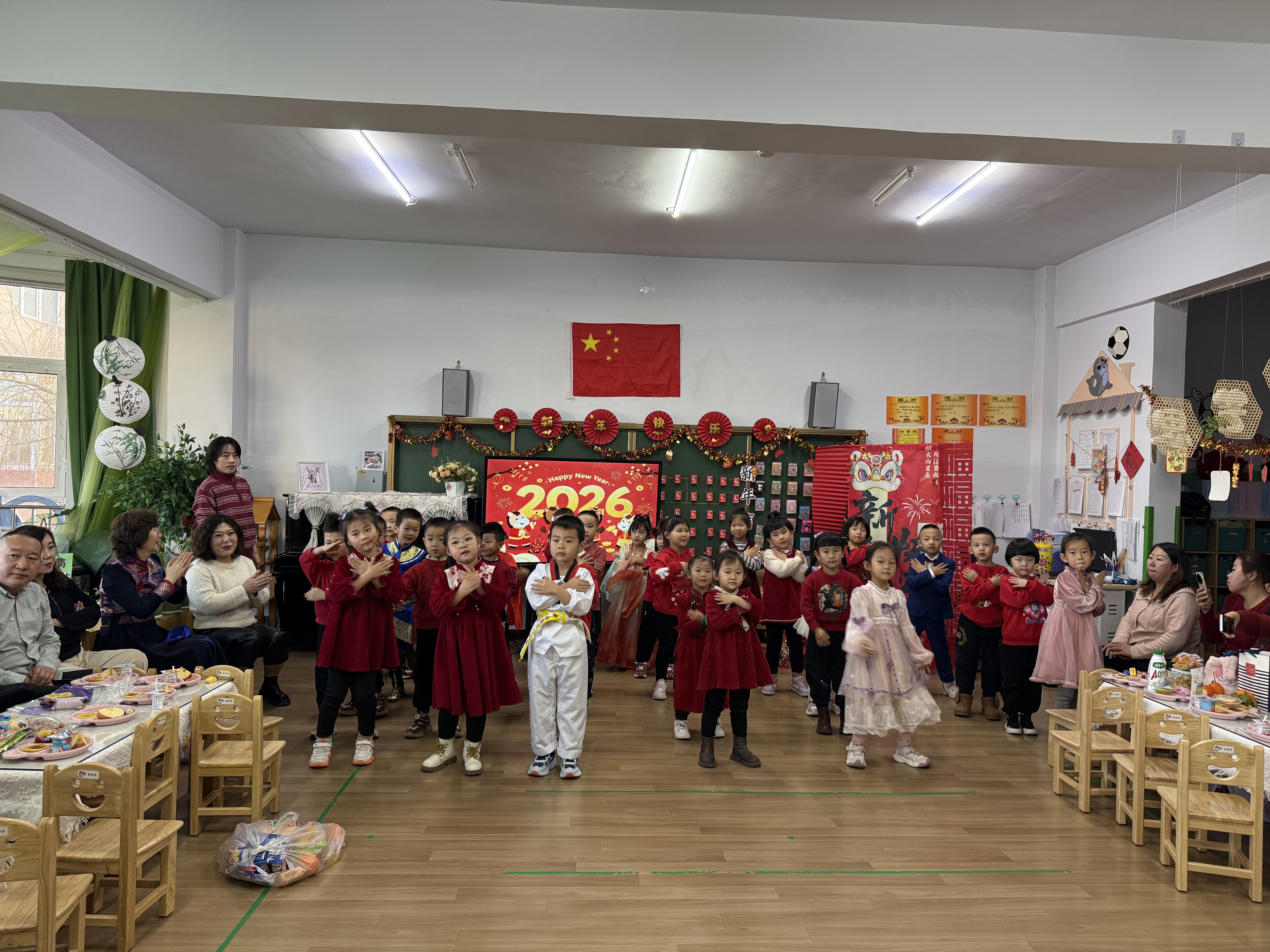 在凉城县第一幼儿园,红彤彤的灯笼挂满走廊,喜庆的福字贴满墙面,处处洋溢着浓浓的节日氛围。各班级通过节目表演、手工制作、趣味游戏等丰富多彩的形式,共同迎接新年的到来。