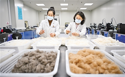 1月8日,内蒙古自治区纤维质量监测中心的工作人员正在分梳山羊绒检验样品取样。“十四五”期间,该中心通过科研创新攻克技术瓶颈,建立产业创新平台等措施,科研与装备研发成果显著。截至目前,已自主研发山羊绒手排长度电子图版扫描仪等6台(套)专用设备;累计获得发明专利3项、实用新型专利4项;主导、参与制定完成各类标准共37项。(孟和朝鲁 摄)