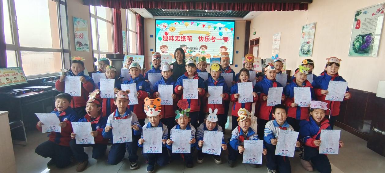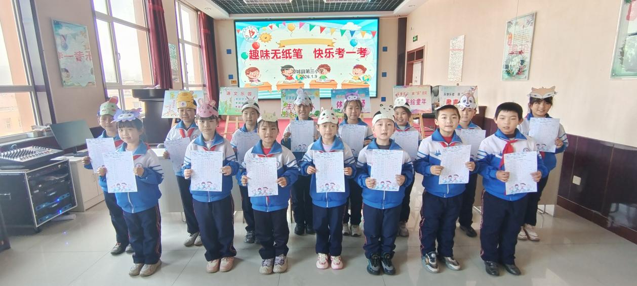在凉城县第三小学无纸笔测试现场,教室被精心打造成充满童趣的“知识乐园”,语文、数学、综合素养等学科知识被巧妙融入各个闯关关卡。“语文乐园”里,戴着头饰的小选手们自信认读生字词,声情并茂地背诵经典篇目,尽显语言魅力;“数学天地”上,他们化身小算手,快速破解生活情境中的数学难题,灵动的思维在挑战中闪光;“综合大舞台”上,唱歌、劳动实践、体育、美术轮番上演,全面展现多元素养。