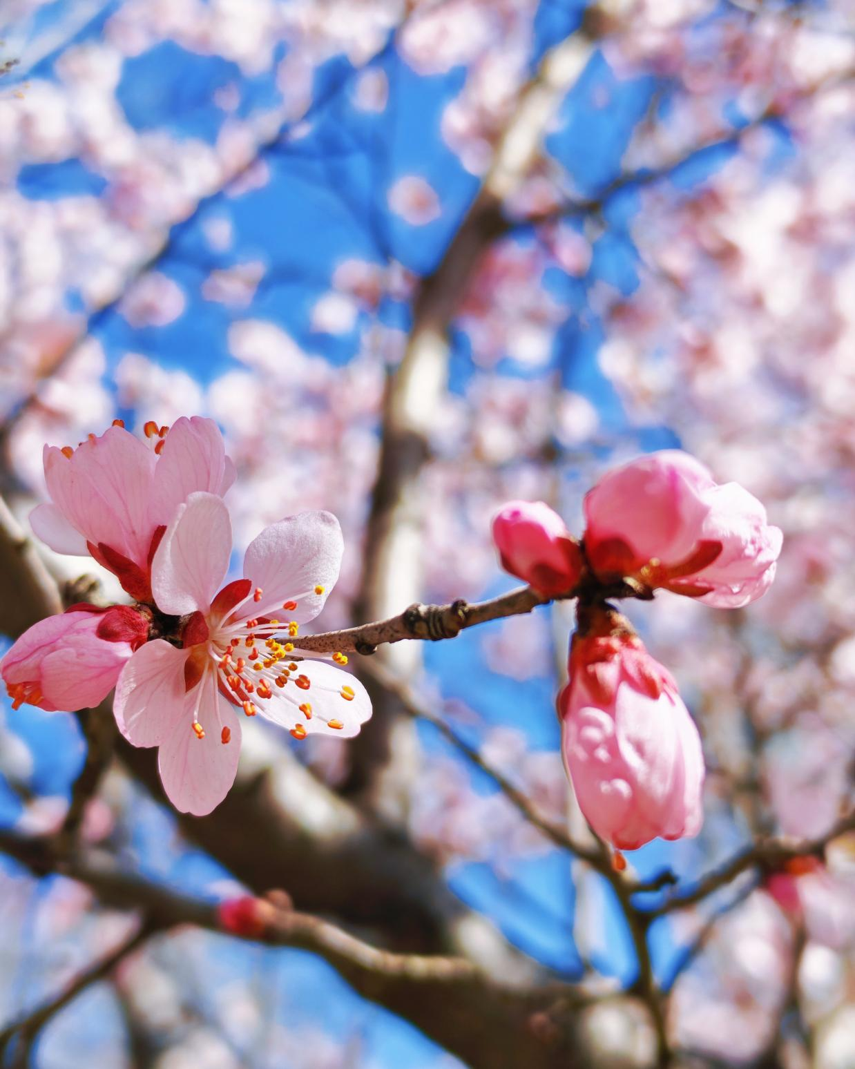 4月7日,记者在城区多处看到,一簇簇杏花悄然绽放,红、白、粉三色花瓣缀满枝头,为城市增添了浓浓诗意与暖意。