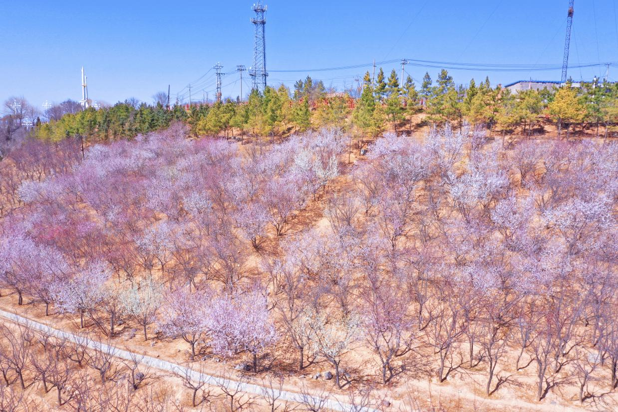 北山半山腰处,杏树错落分布,繁华盛放。浅粉色的花瓣娇嫩柔美,白色的花朵清雅脱俗,还有些许淡红色的花苞含苞待放,各色杏花相映成趣,远远望去,宛如云霞般绚烂。微风拂过,花枝轻轻摆动,淡淡的花香随风飘散,尽显春日的灵动与美好。